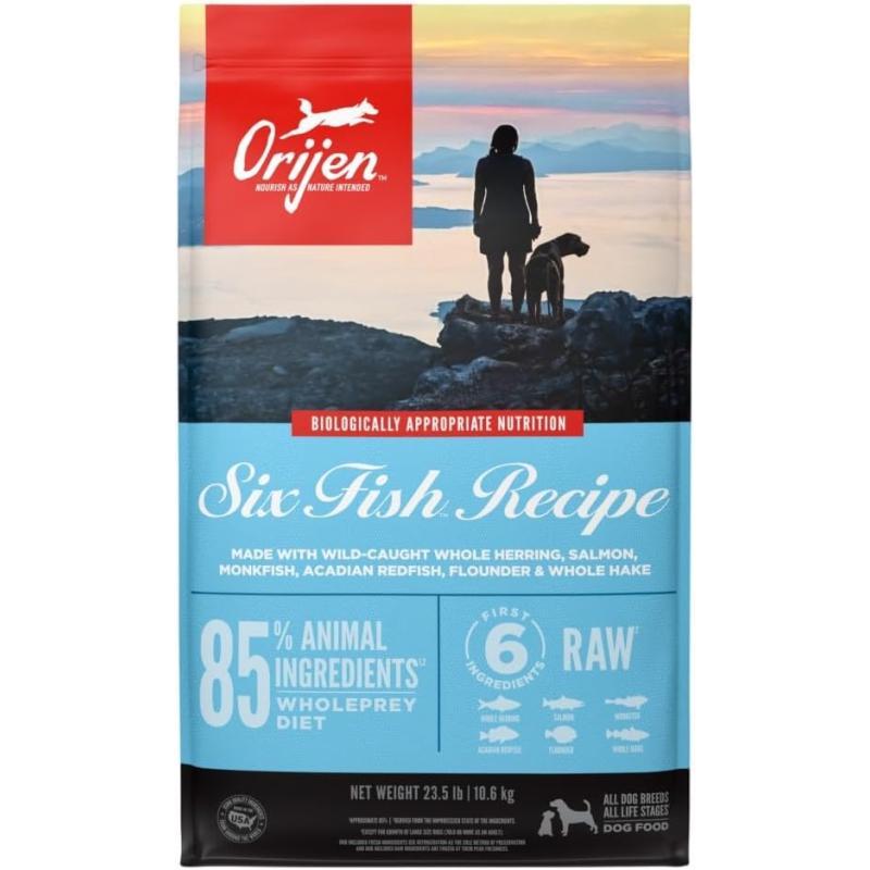 ORIJEN Original Dry Dog Food, Grain Free Dog Food for All Life Stages, Fresh or Raw Ingredients, 23.5 lb(Grain-Free Food Six Fish 23.5 Pound (Pack of 1))